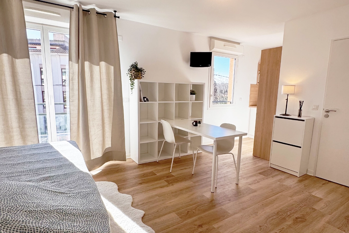 Résidence 384, vous propose à la location un studio de 21 m2, entièrement meublé et équipé, au sein d’une petite résidence à taille humaine (39 logements).